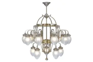 Cologne 5 armed chandelierThe average sized, elegant Cologne chandelier is inspired by simple art nouveau. Due to its fine, low-key decor, it goes with many styles. It is a breathtaking lighting source of a livingroom, salon or large hall. The lamp is fitted with glass shade of your choice. Its 5 arms are rasped to be perfectly angular. The lamp is a unique, handmade Hungarian product. It is made of pure brass in shiny, antique and nickel finishes. Its 5 E27 sockets are porcelain ones, so it can be fitted with traditional and LED bulbs.Take a really close look at the lamp: it is, just like every lamp of ours, crafted with great care, just like a piece of jewellery. Our well-known trademark is proportionality, which took years to design and refine.In order to manufacture the lamp 14 to 16 work stages are required, depending on the finish. Handicraft technology is time consuming (some work stages take hours), it requires wide knowledge and expertise.