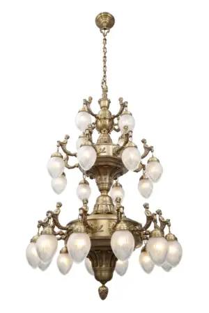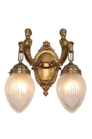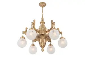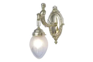 Among neo-baroque classical lamps, those of Fortuna collection are our most known ones. In the final years of the 19th century the ornate and romantic mermaid decor holding the manually cut glass was wide spread among lamp manufacturers.This extravagant six armed chandelier with romantic mermaid decor is a fabulous decoration for an imaginative home. The classical forms and the shiny brass add up to a unique lamp which gives your interior more than a touch of luxury. The decor and the arms have been re-chiselled meticulously in every little detail. The lamp was inspired by the original from the end of 1800s. Either with antique finish or gold, the chandelier is a highly elegant deco of your bedroom, dining room or living room of even higher ceiling. Should you like it even more extravagant, ask for a nickel finish. The body of the lamp and the arms are manufactured with greatest care. The lamp can be fitted with conical or round frosted glasses . Every Fortuna chandelier has a wall light companion with either one or two arms, and it is 100 % Hungarian product. We produce it from pure brass in shiny, antique and nickel finishes. Its sockets are porcelain ones, so they can be fitted with traditional and LED bulbs. We recommend it in spaces which measure 18-22 square metres, depending on the room height, what is more, you can have it longer.Take some time to have a really close look at the lamp: it is, just like every lamp of ours, crafted with great care, just like a piece of jewellery. Our well-known trademark is proportionality.In order to manufacture the lamp 14 to 16 work stages are required, depending on the finish. Handicraft technology is time consuming (some work stages take hours), it requires wide knowledge and expertise.