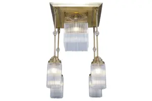 The 5 armed Venice chandelier is astonishing luxury on an average scale. Inspired by Viennese art nouveau, the grand chandelier boasts tiny Cupid figures in company of flower wreaths and other delicate brass ornaments while the arms themselves are rather low-key. The chandelier is adorned with 200 transparent, manually threaded delicate tubes which form a dense glass curtain. Once the light is on, wonderful reflections appear on its surface, resulting in magical atmosphere in the interior. Given its size, the chandelier looks best in average sized interiors such as lavish livingroom or boutique selling premium quality goods.The lamp is a unique, handmade Hungarian product. It is made of pure brass in shiny, antique and nickel finishes. Its 5 E27 sockets are porcelain ones, so they can be fitted with traditional and LED bulbs. Just like any other lamp with glass tubes, it is delivered with extra ones.Take a really close look at the lamp: it is, just like every lamp of ours, crafted with great care, just like a piece of jewellery. Our well-known trademark is proportionality, which took years to design and refine.In order to manufacture the lamp 14 to 16 work stages are required, depending on the finish. Handicraft technology is time consuming (some work stages take hours), it requires wide knowledge and expertise.