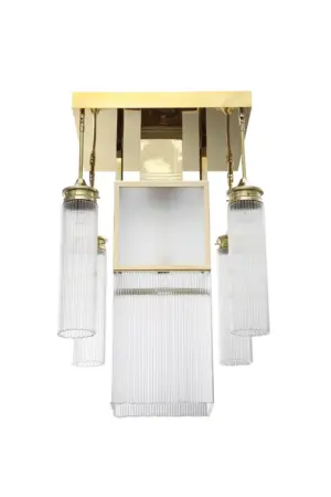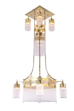 Wiener chandelier II is pure art nouveau minimalism on grand scale. The magnificent chandelier is adorned with 1240 transparent, manually threaded delicate tubes which form a dense glass curtain. Once the light is on, wonderful reflections appear on its surface, resulting in magical atmosphere in the interior. Given its size the chandelier looks stunning in an equally grand staircase of a lavish villa, but it is an eyecatcher in a big, elegant restaurant or a showroom as well, looking even more extravagant in nickel finish. The lamp is a unique, handmade Hungarian product. It is made of pure brass in shiny, antique and nickel finishes. Their 25 sockets are porcelain ones, so they can be fitted with traditional and LED bulbs.Take some time to have a really close look at the lamp: it is, just like every lamp of ours, crafted with great care, just like a piece of jewellery. Our well-known trademark is proportionality, which took years to design and refine.In order to manufacture the lamp 14 to 16 work stages are required, depending on the finish. Handicraft technology is time consuming (some work stages take hours), it requires wide knowledge and expertise.
